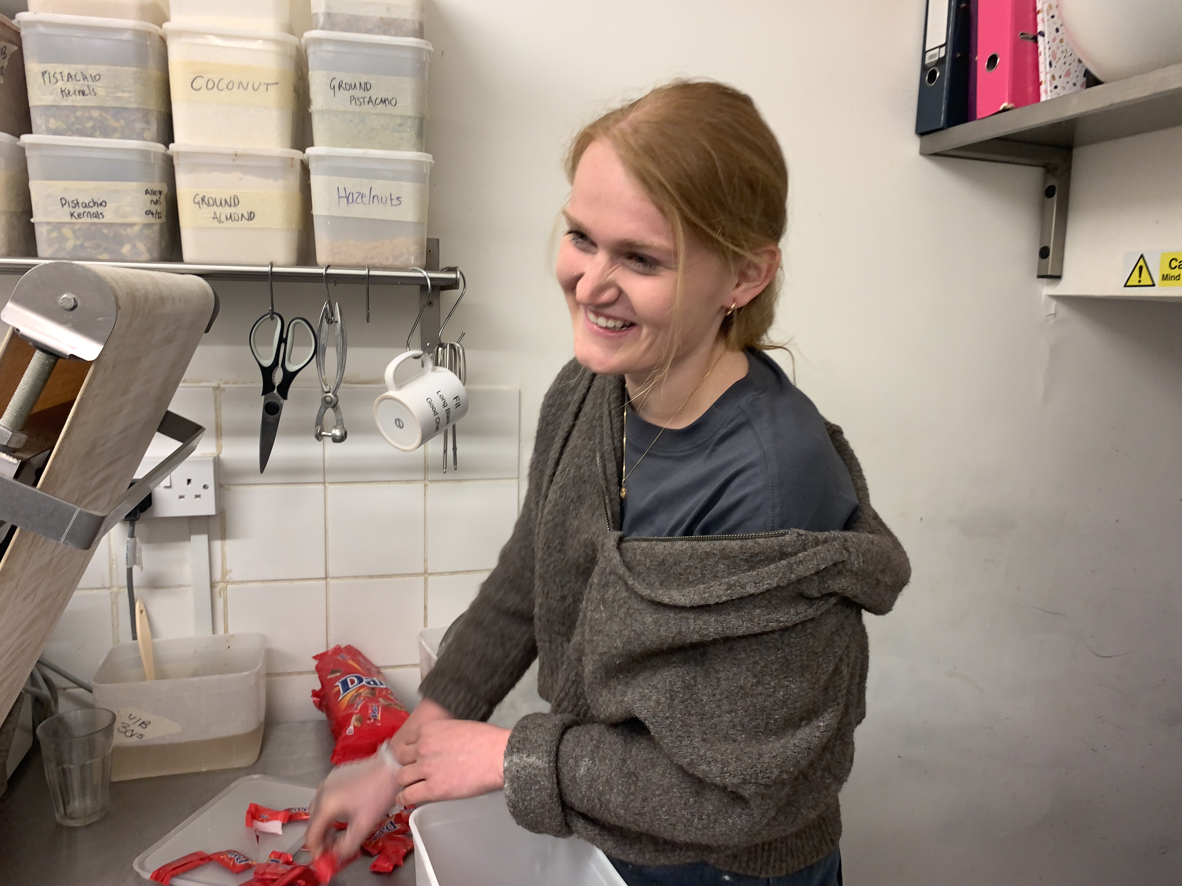 I really liked this candid shot I took of India whilst she was preparing the Daim bites for the pastries and having a casual chat and giggle with her co-workers. Her expression drew me to choose this image, she looks happy, relaxed and like she is thoroughly enjoying herself at work.