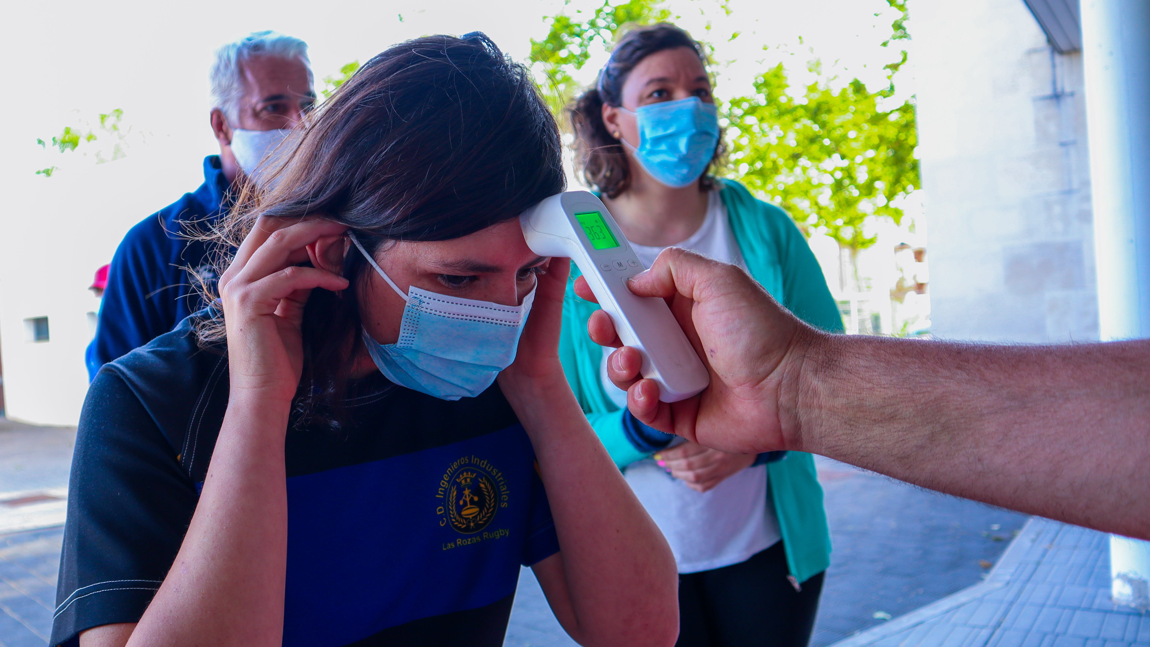 Just outside El Zoco shopping mall, on a windy Thursday evening, a group of 20 teenagers and adults get their temperature checked before heading to the changing rooms. A ritual they’ve been doing since the end of lockdown. It’s unusual and time-consuming but unquestionably necessary.