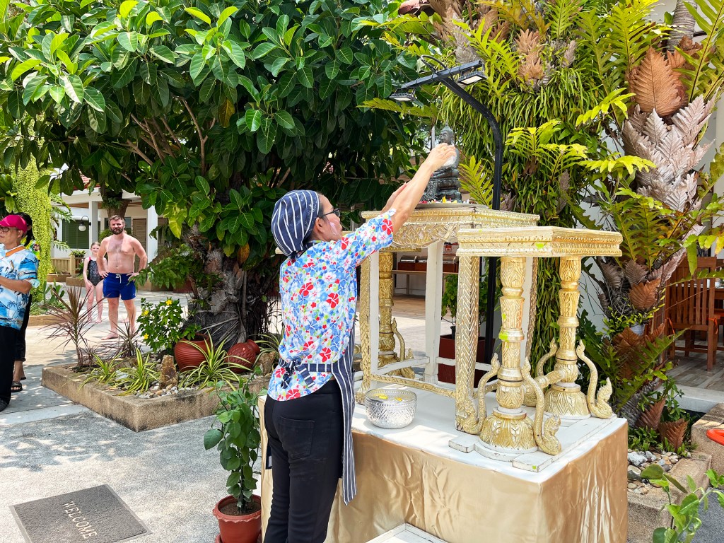 They also gathered everyone round a Buddhist shrine and poured more water over the Buddha whilst continuing to sing their songs. Everyone was then instructed to bow at the Buddha to pay our respects and thank it for taking us into the new year.