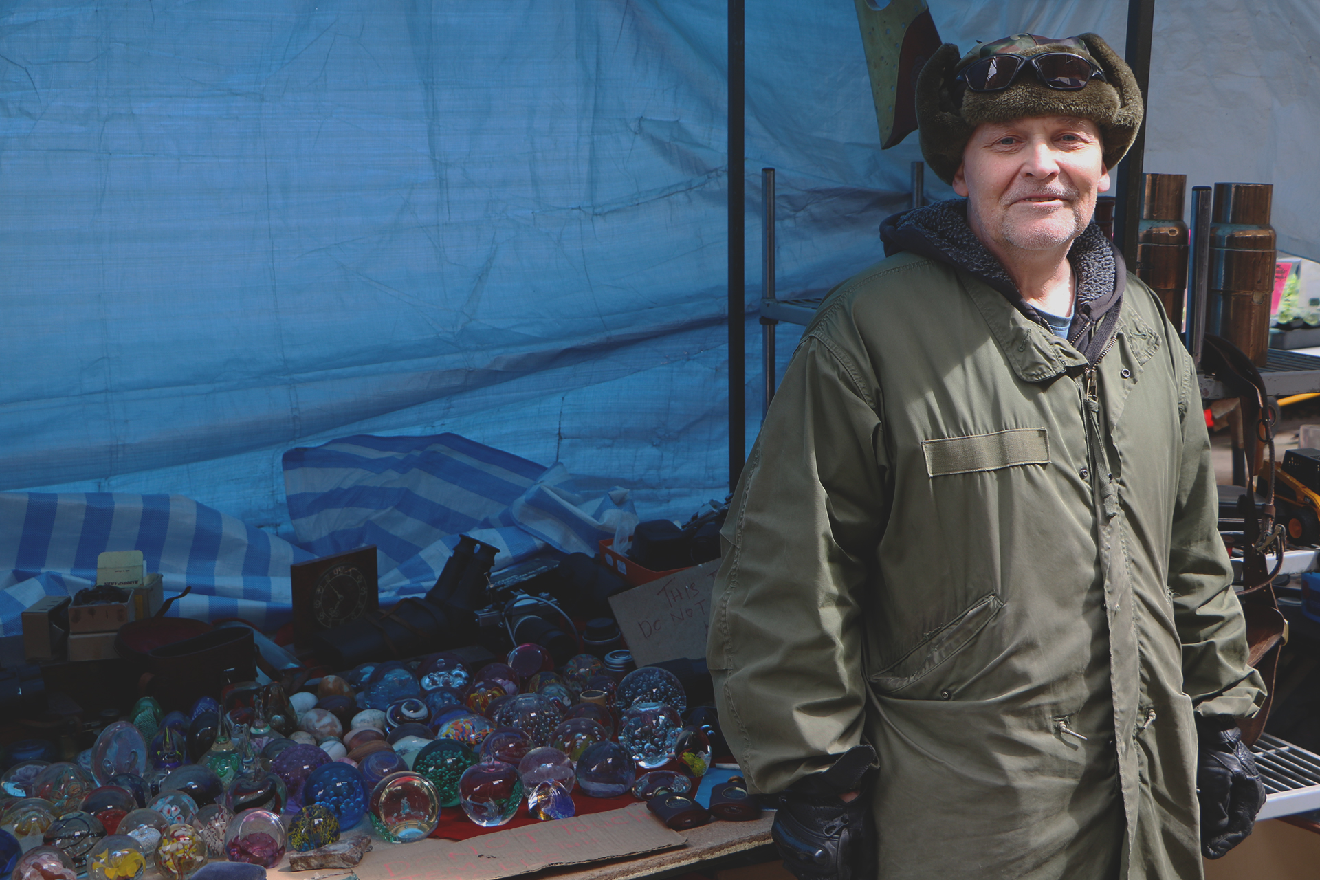 The man pictured above is Jammy. A second generation mod, Jammy now owns multiple stalls in the Stockton-on-Tees flea market, a small brick square tucked away on Stockton high street filled with market stalls selling vintage and retro trinkets. Beginning in 1813, the market has remained a staple of Stockton and is almost symbolic of the need for affordable market stalls amidst a deprived area. Nearby, through a back alley towards the end of a market, one can find the former site of the Castlegate shopping centre, soon to be developed into a waterfront park forming a key part of the regeneration project of Stockton high street. Jammy, having spent most of his life working in the flea market, is both concerned and excited for the project; concerned that the regeneration process may soon target the flea market for reconstruction, and excited over the prospect of more visitors to the high street.