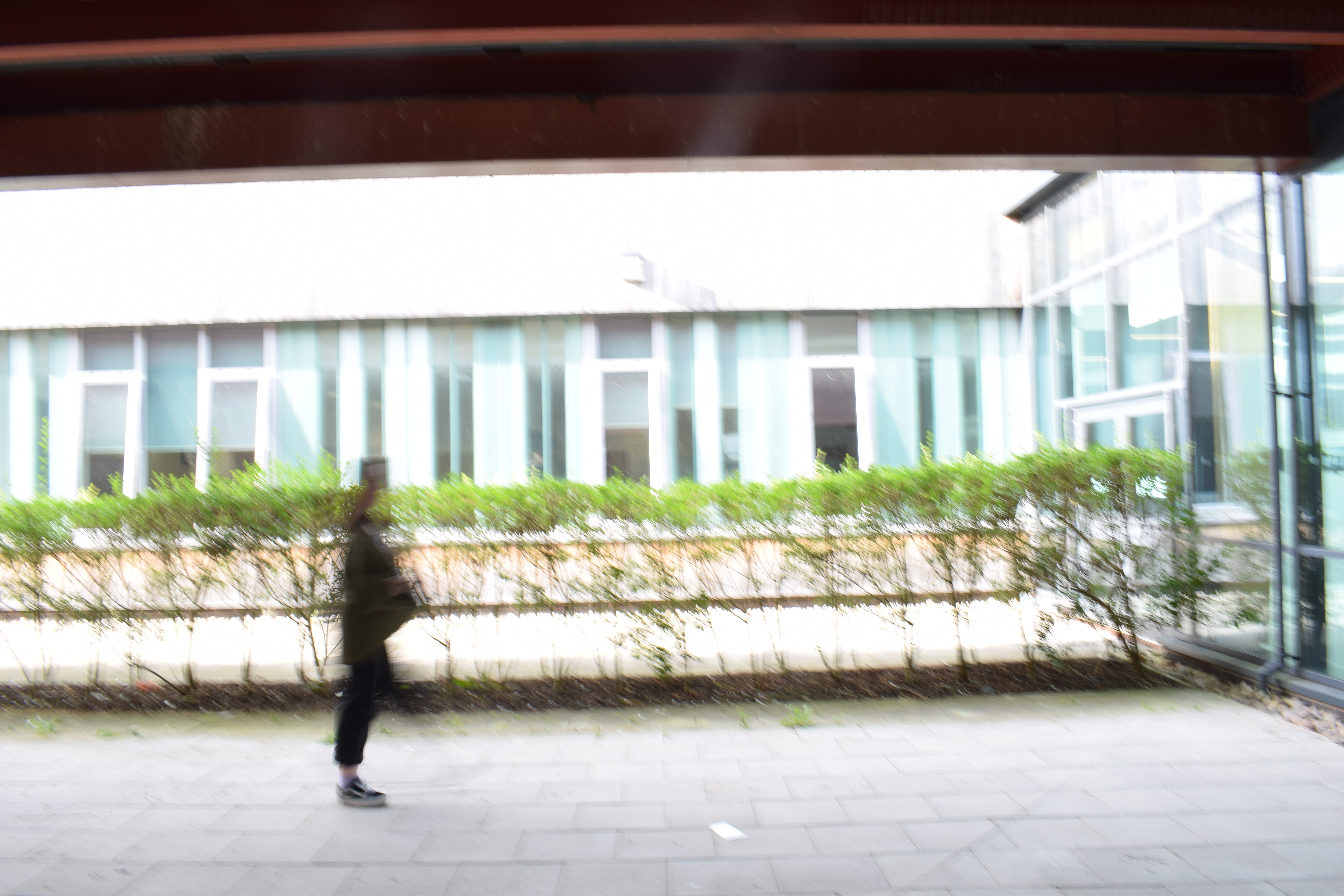 This image has a hight shutter speed than the previous image, as you can see you can see the focus on the building more and see the outline of the person in the image.