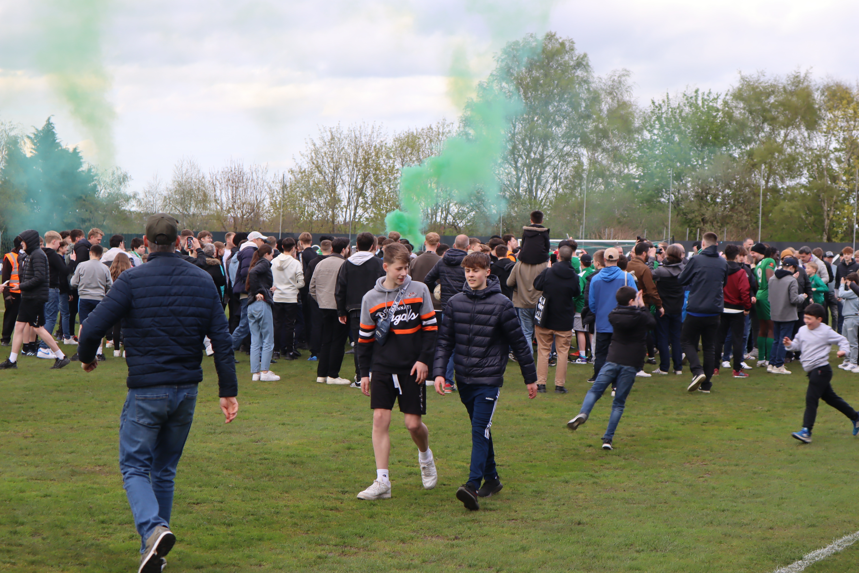I was fortunate enough to be attending a game where if Farsley won and other results went their way, they would avoid relegation. Thankfully, they won 2-0 leading to a pitch invasion at the end which made for some good images such as these. I think the supporters on the pitch also helps to convey how much of a close knitted community Farsley is as a club which really fits the article I am currently in the process of writing.
