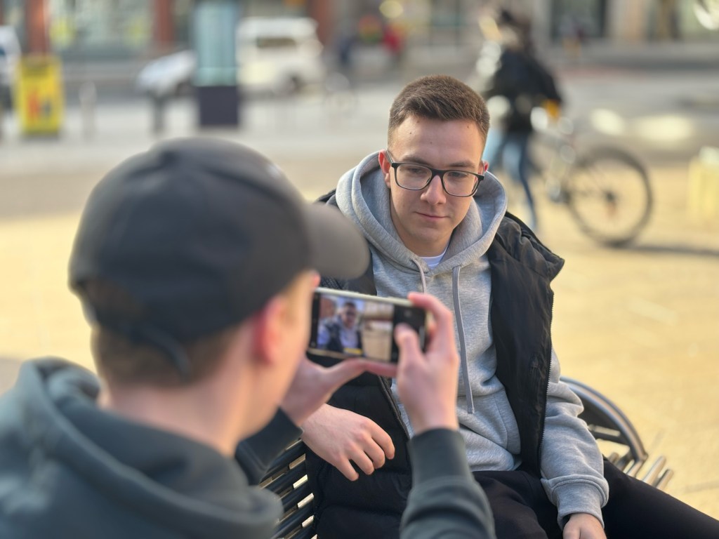 F-stop low (F/1.4) For this image I set the F-stop on my phone to the lowest. This therefore made the light on my model brighter, as I am solely focused on the model when taking the picture