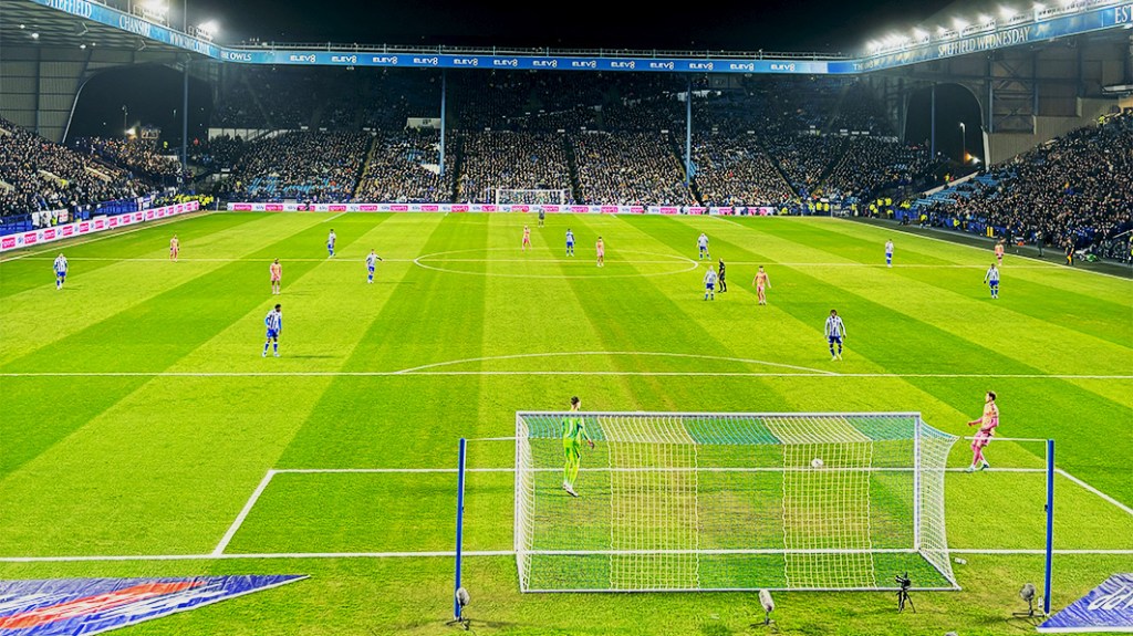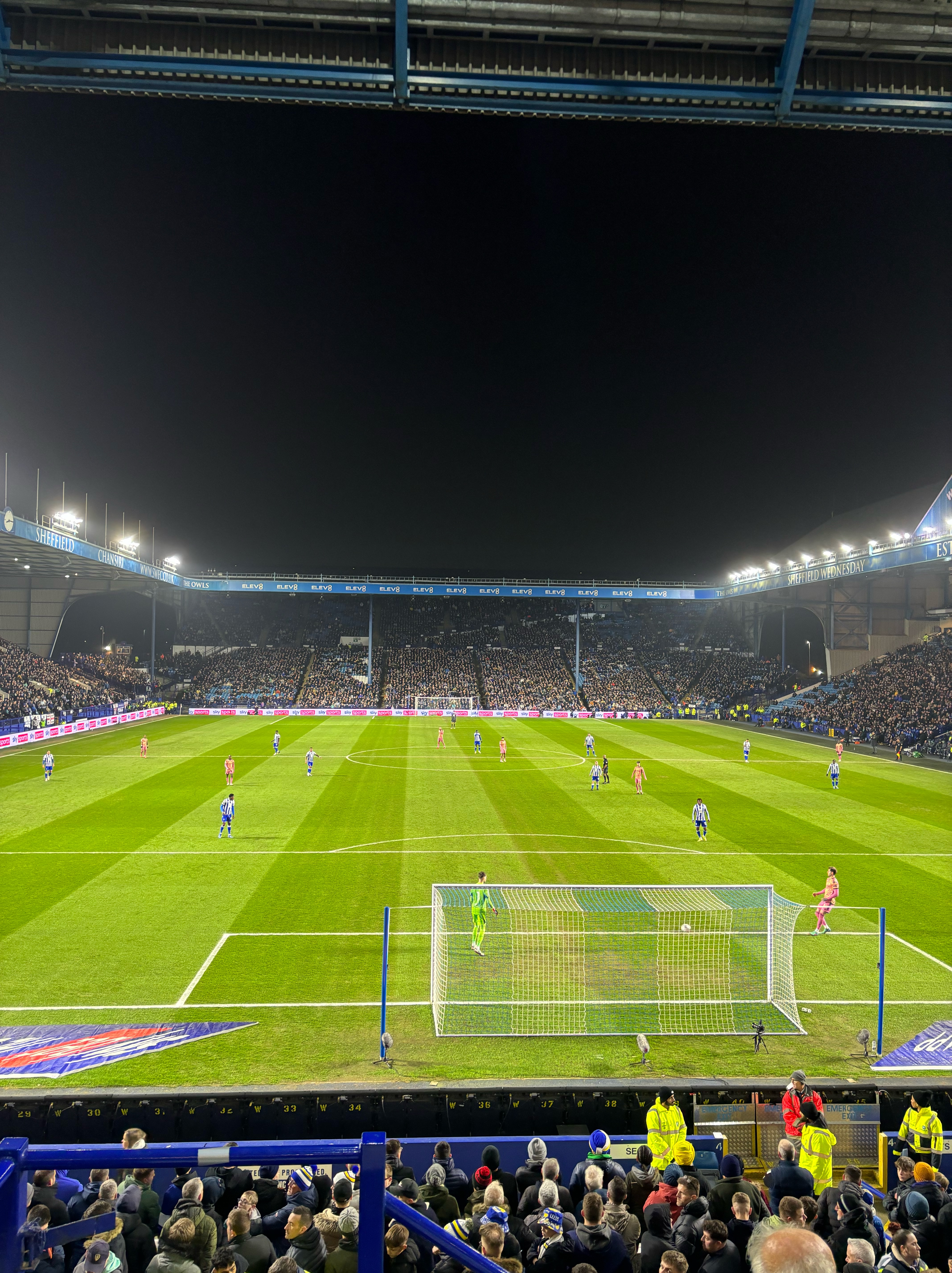 This image was taken on Friday during Leeds United’s 2-0 win against Sheffield Wednesday at Hillsborough. To start off with in this image, I converted from portrait to landscape. I then went on to adjust the colour and focused solely on the pitch and made the pitch look a bit look a bit more of a true shade of green. After I did this I dimmed the brightness and contrast on the image ever so slightly, this made the colours stand out more, and also reduced the brightnes of the floodlights.