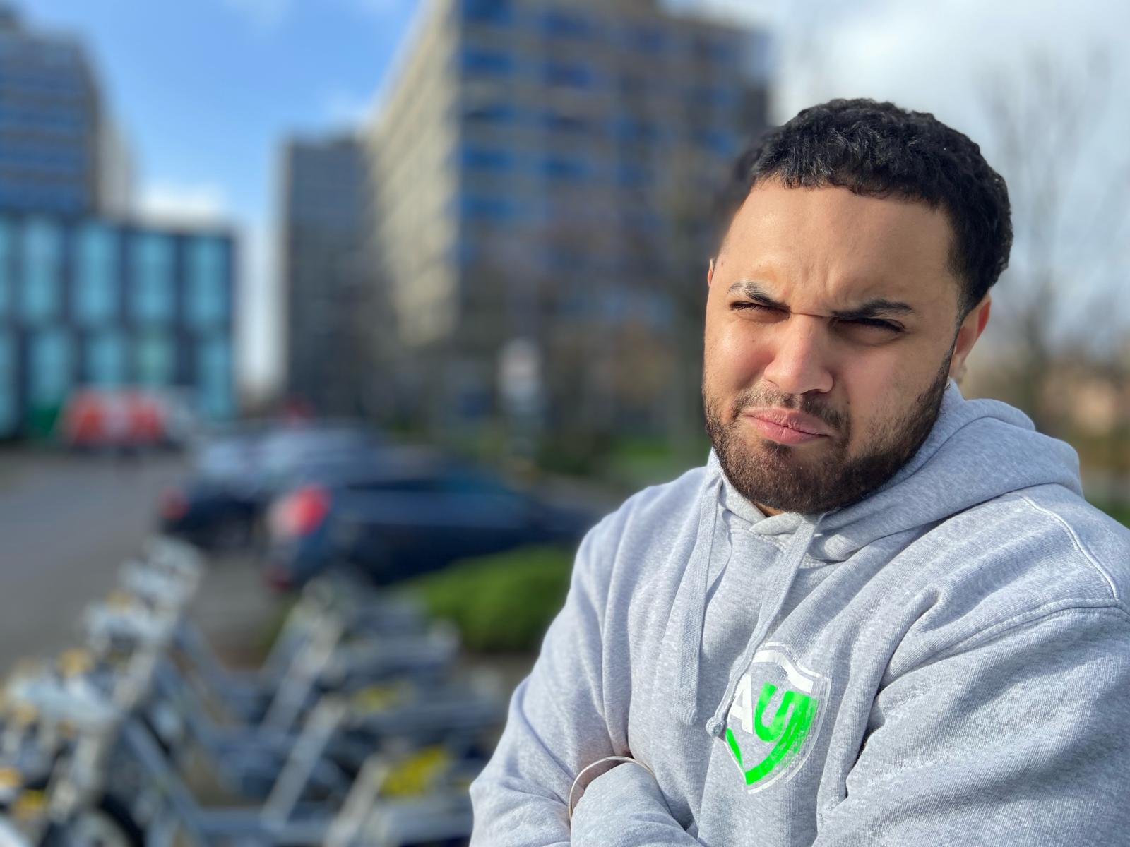This image of Seven uses a medium F spot, as you can tell by looking at the van in the background, which is still out of focus, but the bikes right behind him are more visible.