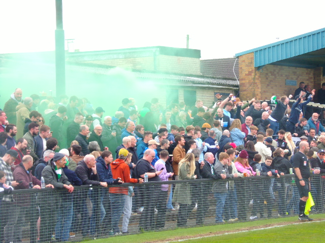 The fans were trying their best to get behind the team, shouting and cheering every big challenge, but the mood changed completely when news spread that Brackley had taken an early lead against Blyth, meaning as of from that moment, if the results stayed the same, Farsley would stay up.