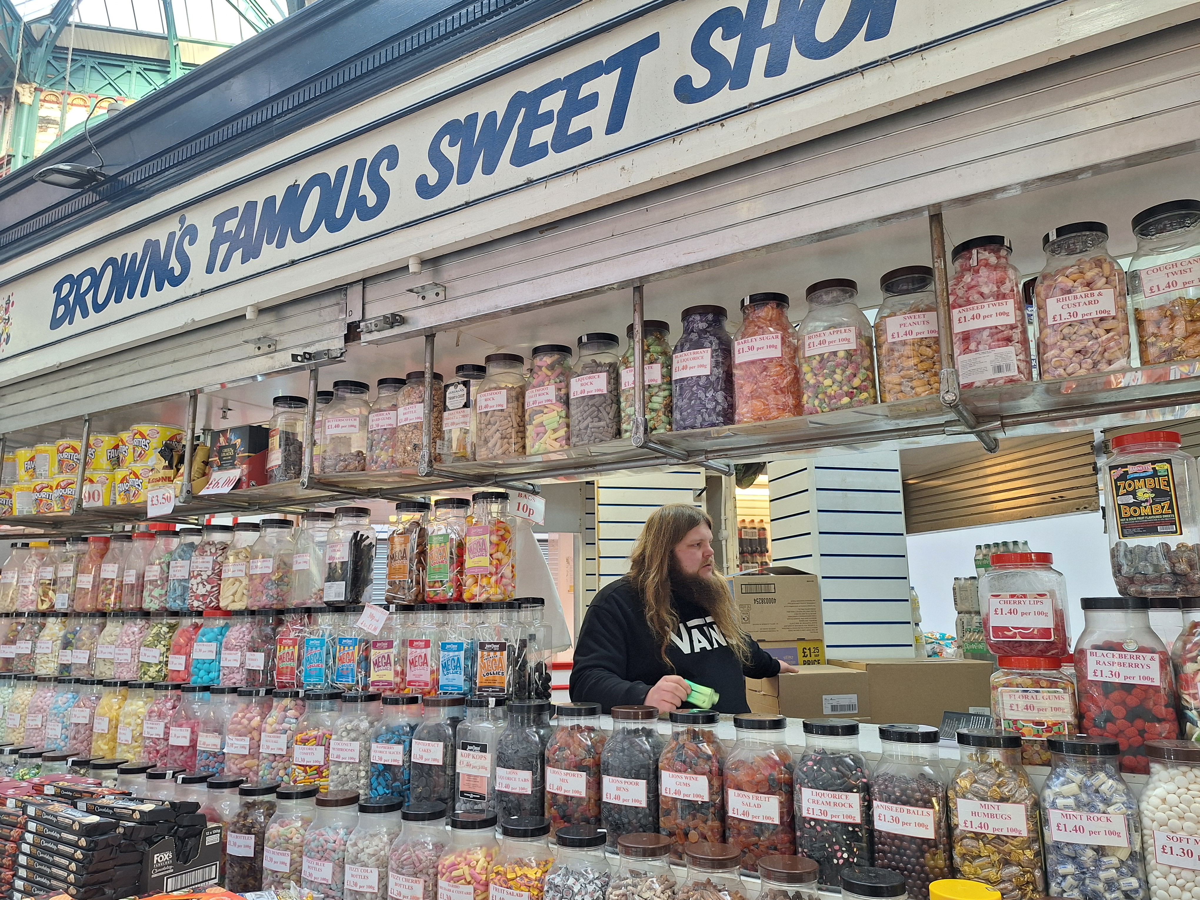One of the stalls, ‘Brown’s famous sweet shop’ is among the 800 stalls in the market. Opened for business in 2002, Brown’s has continued to sell sweets, chocolates, crisps and drinks, keeping the classic sweet shop feel while also adding a modern twist with more up to date products.
