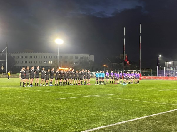 Northumbria (Left – in black) and Leeds Beckett (Right – in purple) line up ahead of the Final