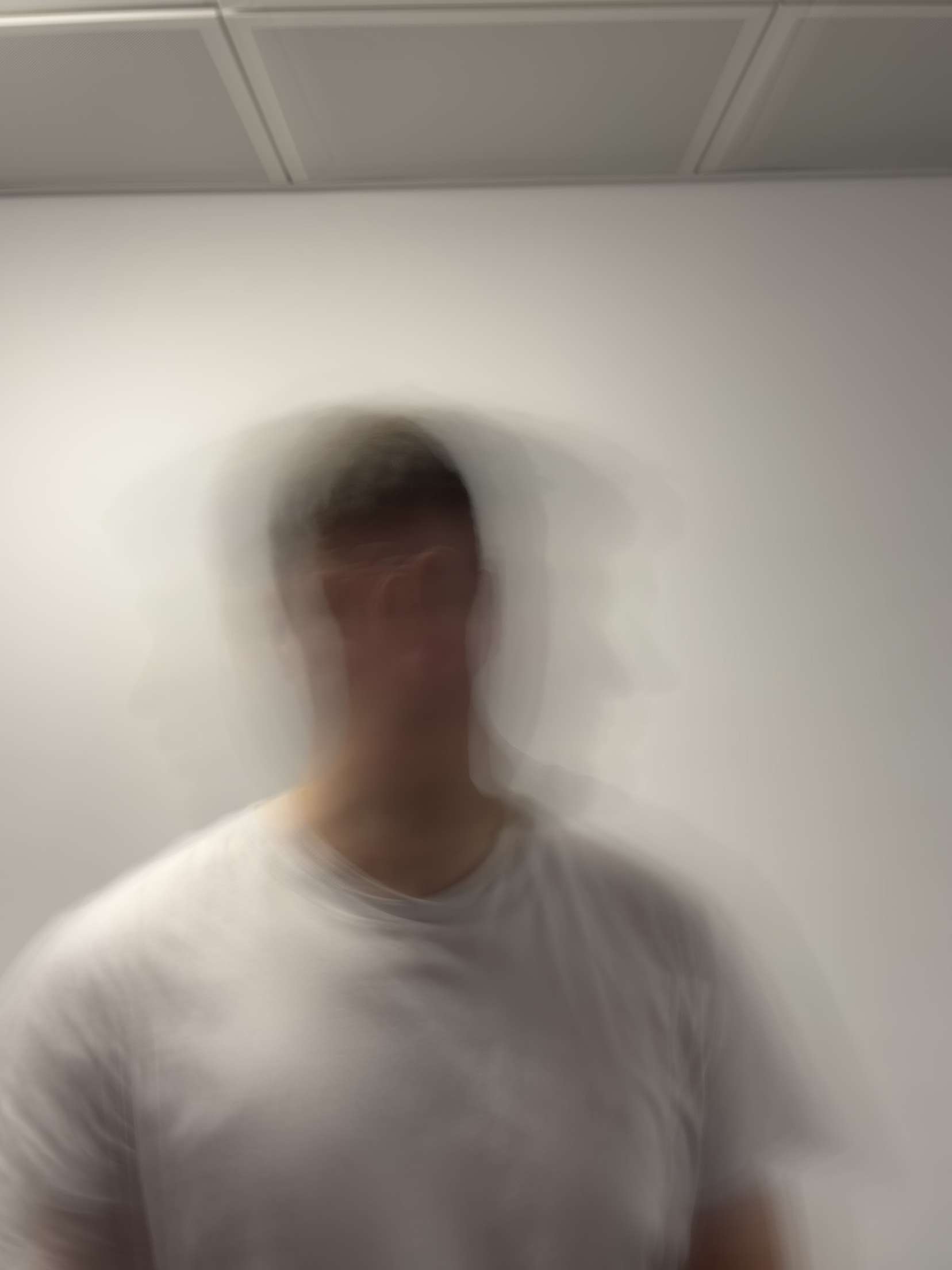 I simply enabled the live photo feature, shook my head left and right, and this was the result. This long exposure affect has created an image where the head looking towards the camera remains still, and more in focus (because it is stationary). However, the movement of my head shaking left and right has created this long exposure affect because stationary objects remain a sharper image whereas moving elements are blurred.