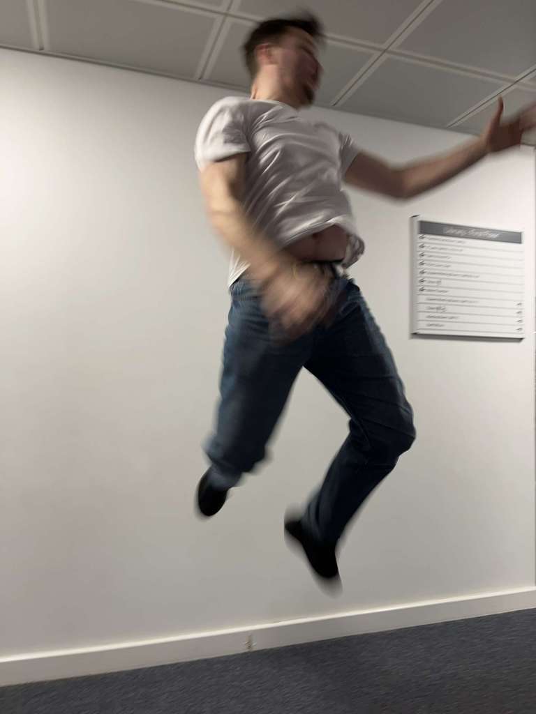 This image of me was taken with a slightly higher shutter speed than normal cameras. This has allowed the image to maintain it’s focus and provide a sharper image of me, despite being in the middle a fast paced movement.