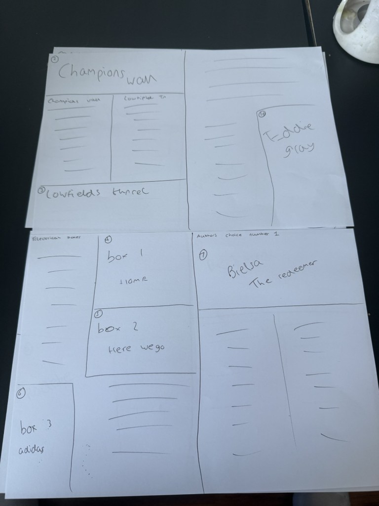Now I have my ideas set for what I want do do. I have done a mock up for what I roughly want my pages to look like so I can start with ideas ready when I load up InDesign.