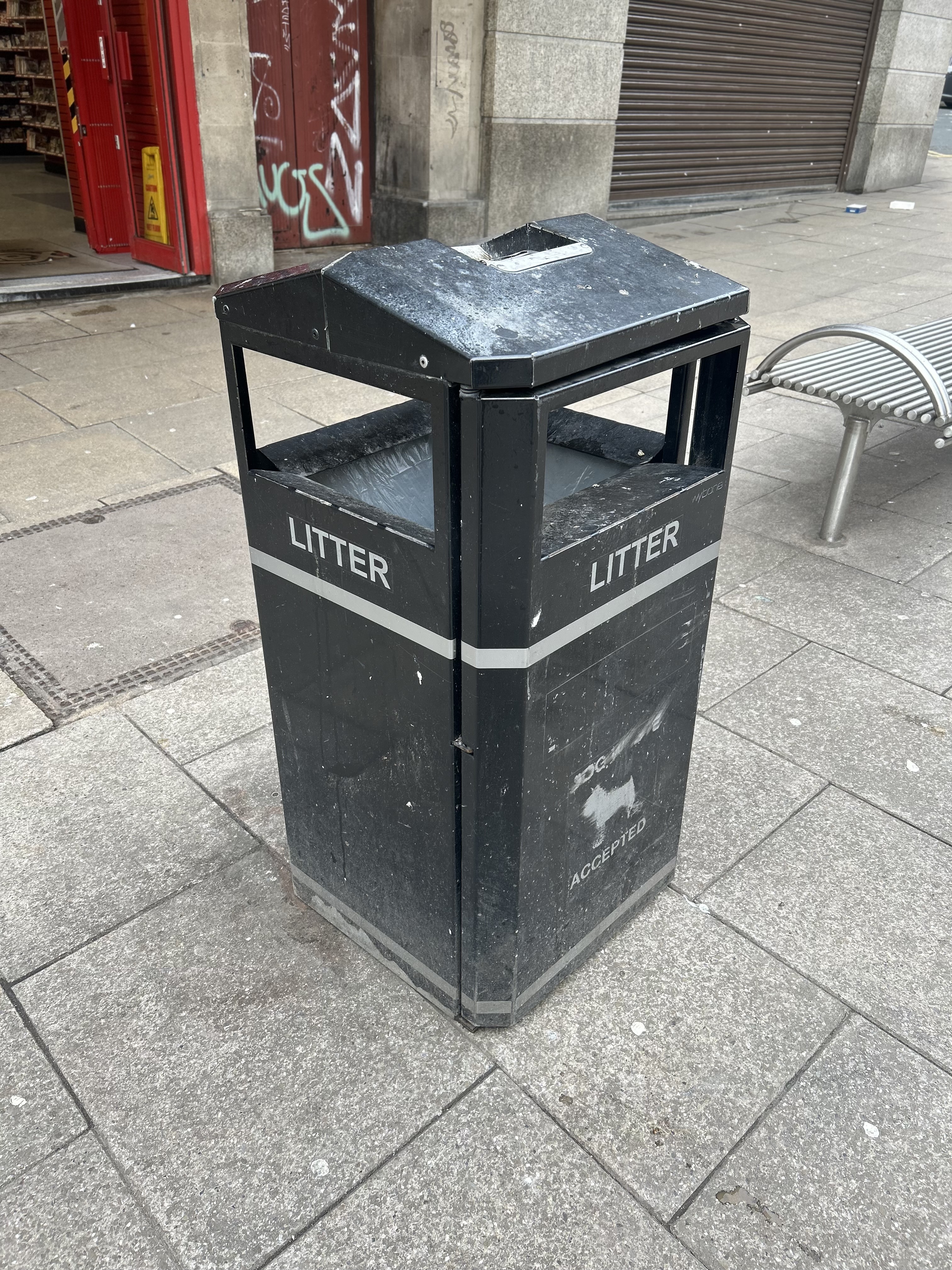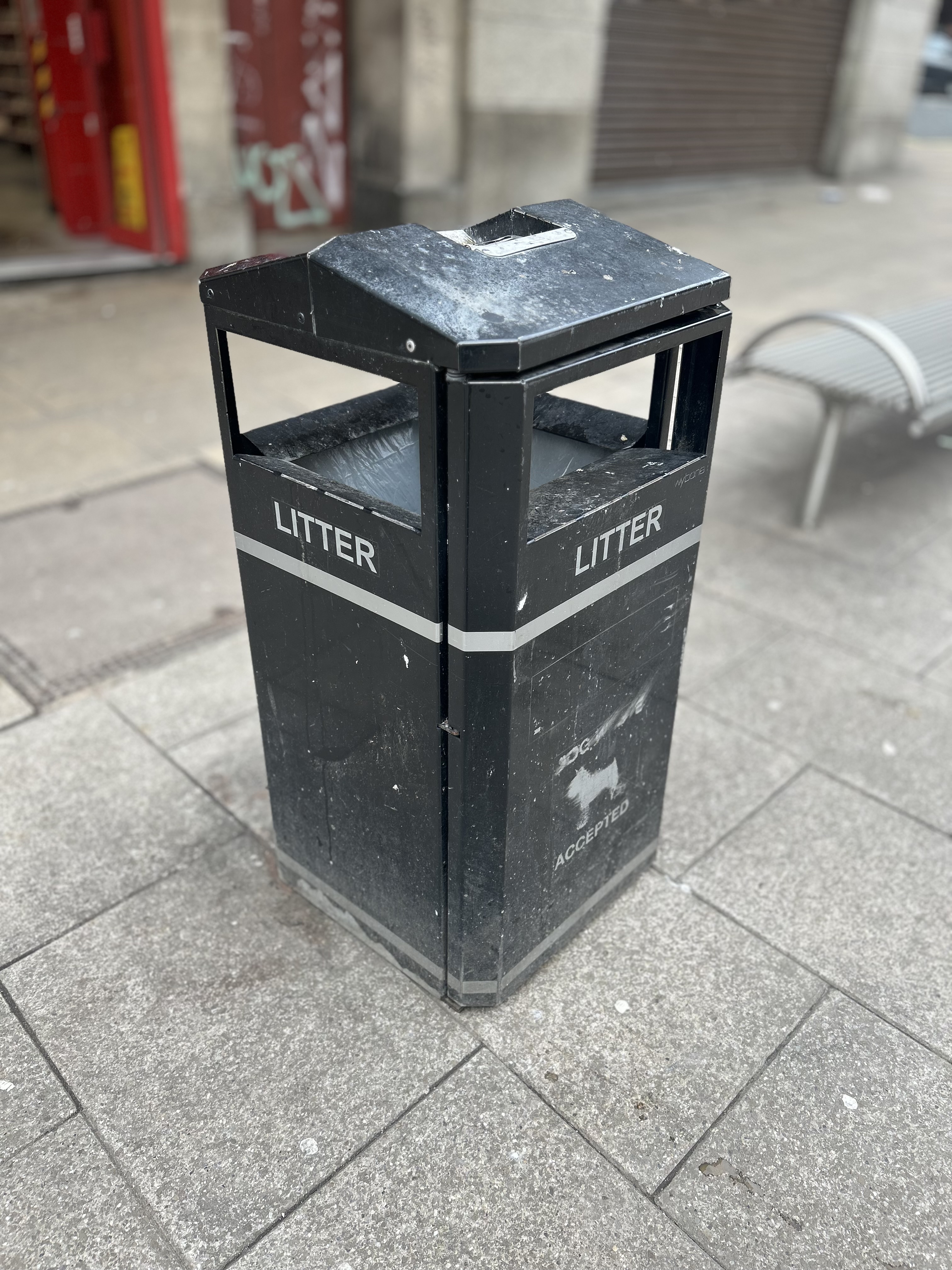 The next photo had the f value set to 5.6, the middle of the scale, the background still has a softness to it and the bin retains most of its sharpness. However, the background can be made out more clearly than in the initial photo.