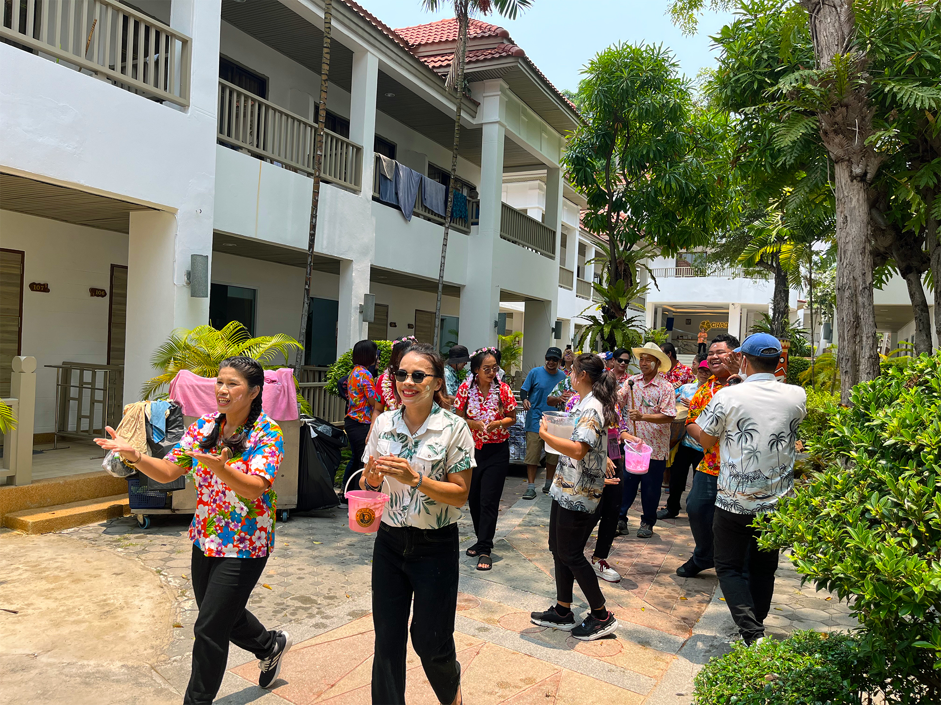 A procession taking place at Chabba Cabana hotel on the morning of Songkran