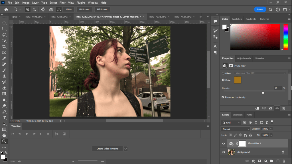 In contrast, during the stages of her enrolling on the journalism course and working as a student journalist, I increase the vibrance and saturation level of the image, as well as the brightness.
