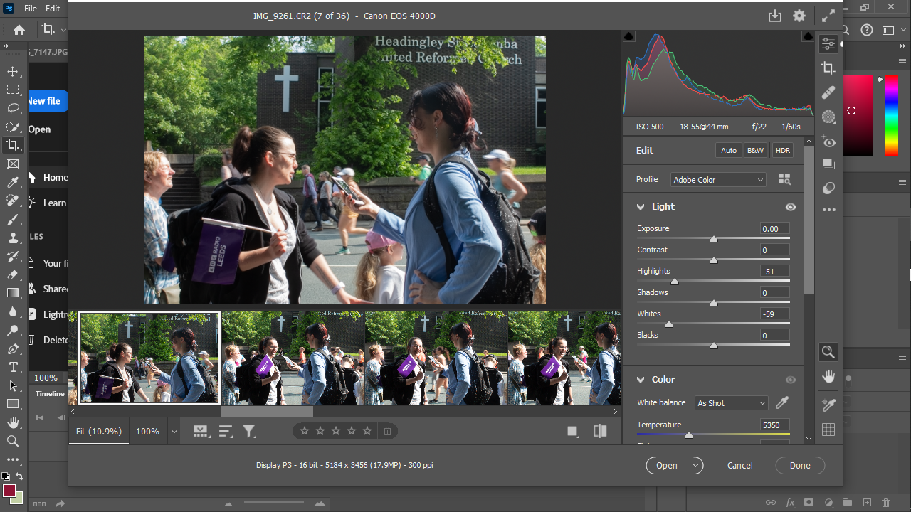 Because the photos were taken on a very sunny day, the light is brighter than usual. The exposure of some images was too bright so I had to reduce the highlights and whites value in Photoshop.