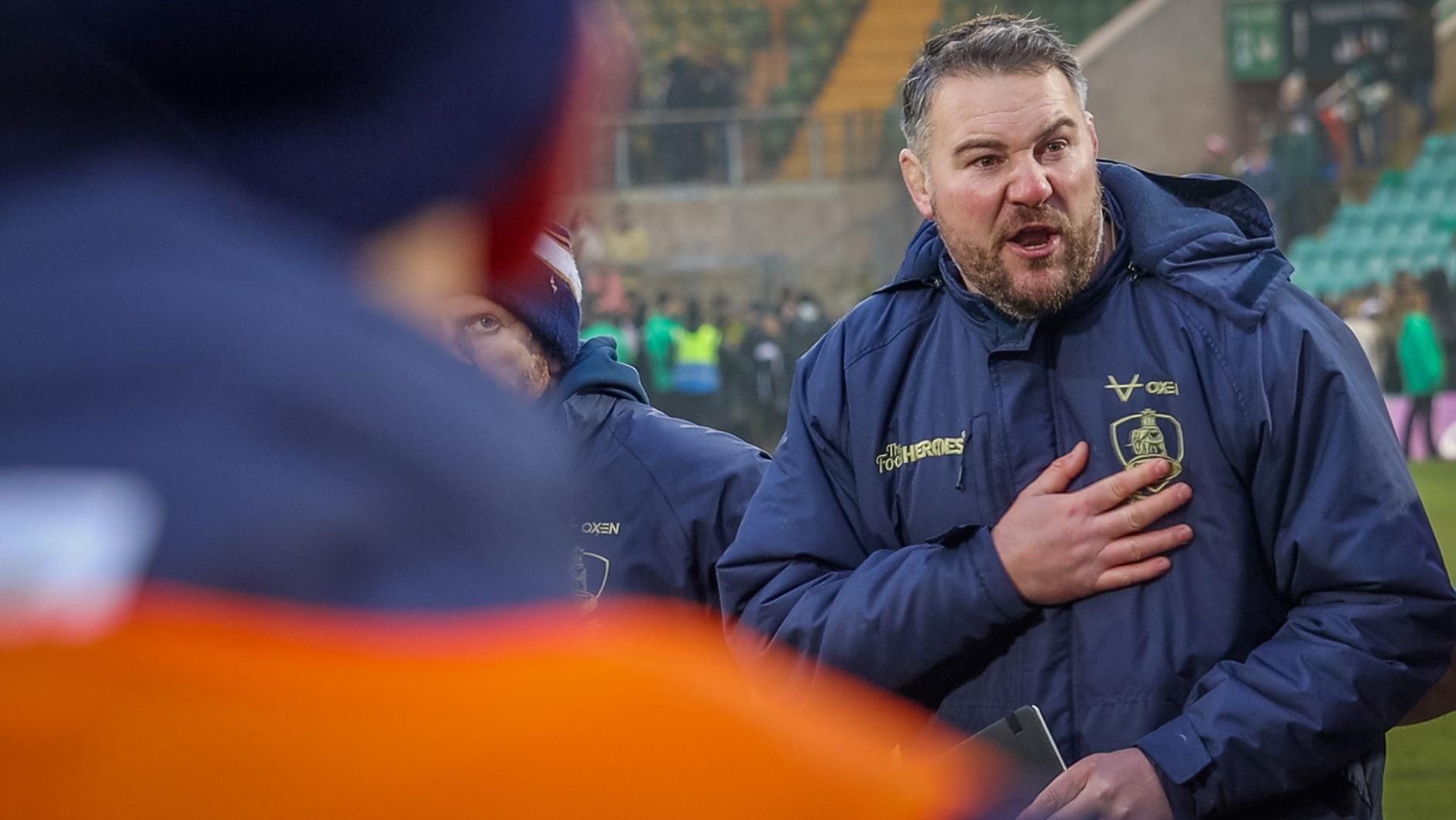 Head Coach, Alex Rae, post-game team talk at Franklin’s Gardens