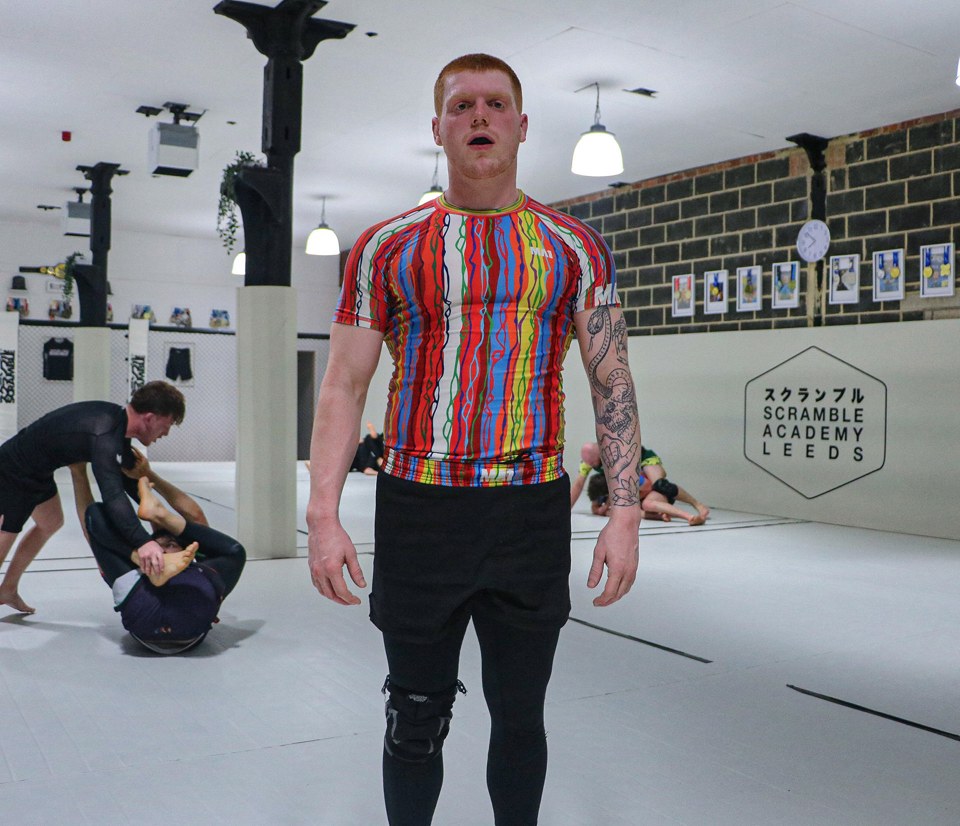 About a ten-minute drive from Kiatphontip gym is ‘Scramble Academy’ in Armley. A martial arts gym which, in its main ‘open mat’ room, offers BJJ training to all skill levels and age groups, seven days a week. One of the more experienced members is Rob Portman, who was inspired to become a Jiujiteiro after he and his brother saw it being used in the UFC. Since then, he’s both fought and coached others in between training.