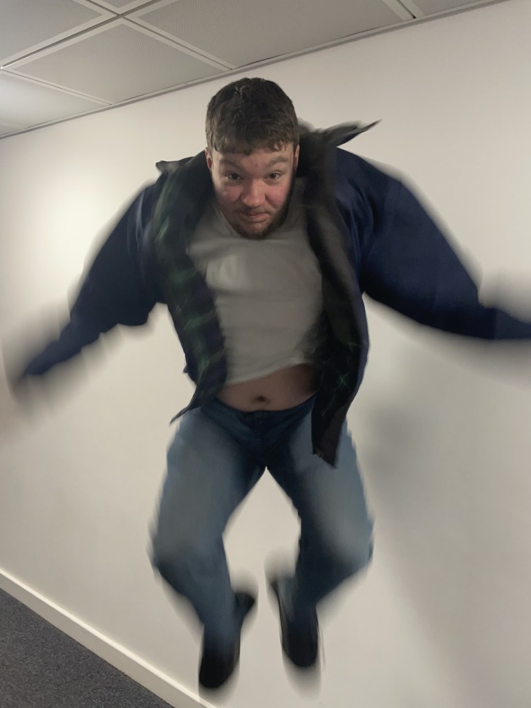 This second image, is of the same model but this time standing completely still aside from moving his hands around to create a blur affect. In order to get this shot, I used a tool on my iPhone called Live Photo. This tool uses long exposure to mimic slow shutter speeds, and in turn can’t capture frames as quickly as a high shutter speed can, creating this blur affect. I believe this image came out at a decent standard. You can tell that the model is standing still aside from his hands moving and the blur affect is quite successful.